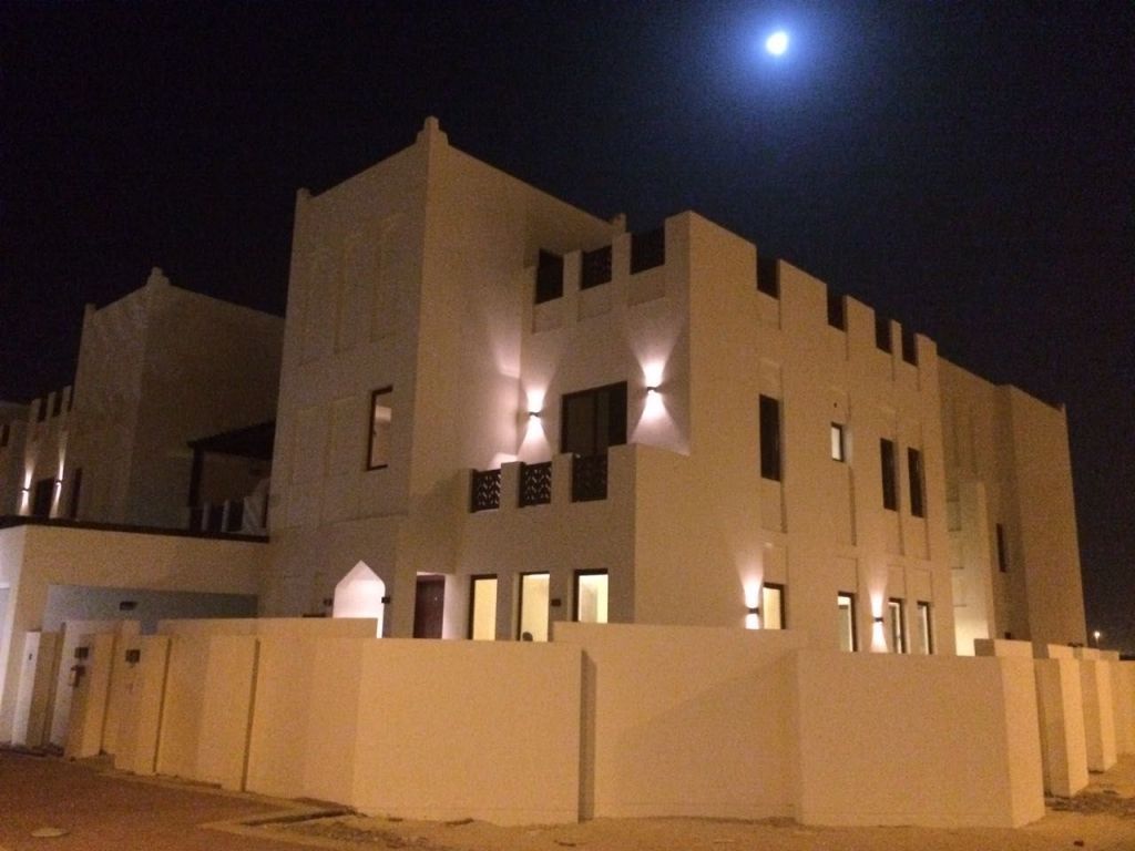 For sale, a villa in Diyar Al-Muharraq Al Noor consisting of 6 rooms, 5 bathrooms, two halls, an internal and external kitchen without furniture, a maid's room and bathroom, a garage for two cars, a large garden located on two streets (corner) land area 280 meters, final price 175000 dinars for contact