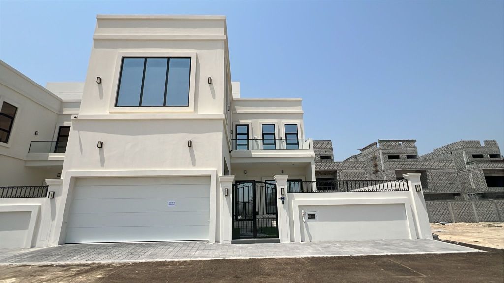 For sale: A residential villa in Janabiya. Land area: 364.5 square meters. Built-up area: 471 square meters. The villa consists of two living rooms, 4 bedrooms, 7 bathrooms, two kitchens, a dining room, a driver's room, a maid's room, a laundry room, two storage rooms, an outdoor garden, and parking for three cars. The villa features an elevator, a fountain, central air conditioning, a surveillance system, and natural lighting (a skylight on the first floor). Price: 260,000 dinars.