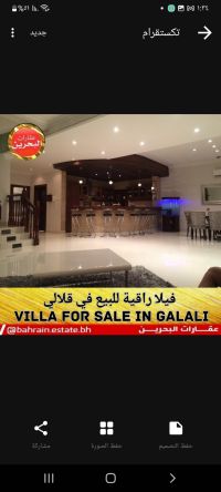 A villa for sale in Qalali with two floors and a land area of 320 square meters. It consists of two living rooms, two floors, 4 bedrooms, 4 bathrooms, a garage for two cars, a large balcony, and a courtyard. The price is 145,000 Bahraini dinars.