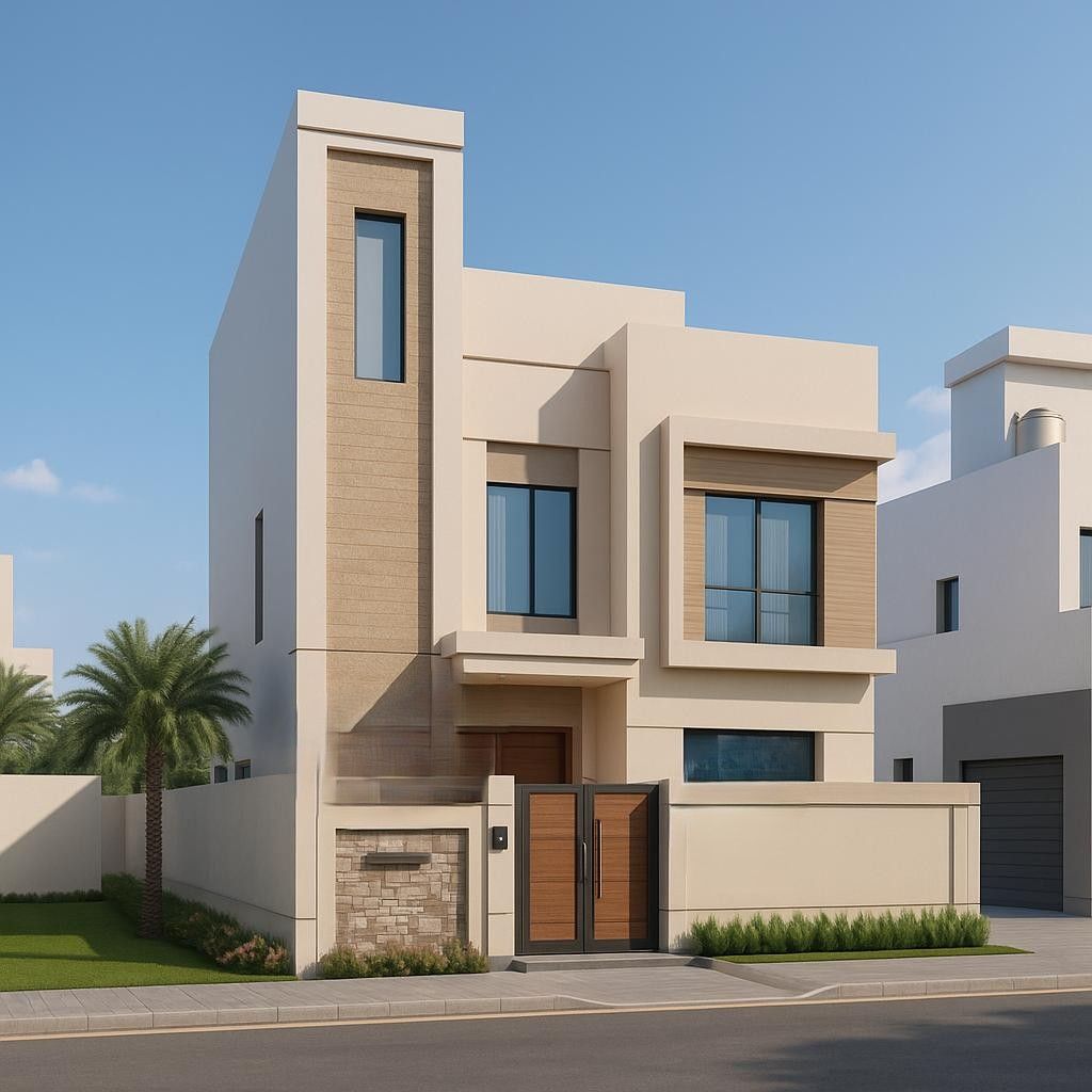 Dominions Real Estate: For sale, a villa in Saraya 1 near Macro Mart. The villa consists of two floors. The ground floor includes a spacious hall, a master bedroom with an en-suite bathroom, a guest bathroom, an internal kitchen, and an external kitchen. The first floor has three master bedrooms and three bathrooms. The second floor includes a maid's room with a bathroom and a laundry area. The land area is 175.6 square meters, and the built-up area is 270 square meters. The price is 130,000 dinars. Reference: 4434.
