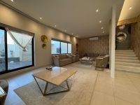Dominions Real Estate for sale: A villa in the Saraya 1 area, near the Al Nakhil complex. The villa consists of three floors. The ground floor includes a spacious hall, a dining room, a fully equipped internal kitchen, an external kitchen, a maid's room with a bathroom, a guest bathroom, and a garage for two cars. The land area is 244 square meters, and the built-up area is 380 square meters. The sale price is 177,000 dinars (negotiable). Ref 4599.