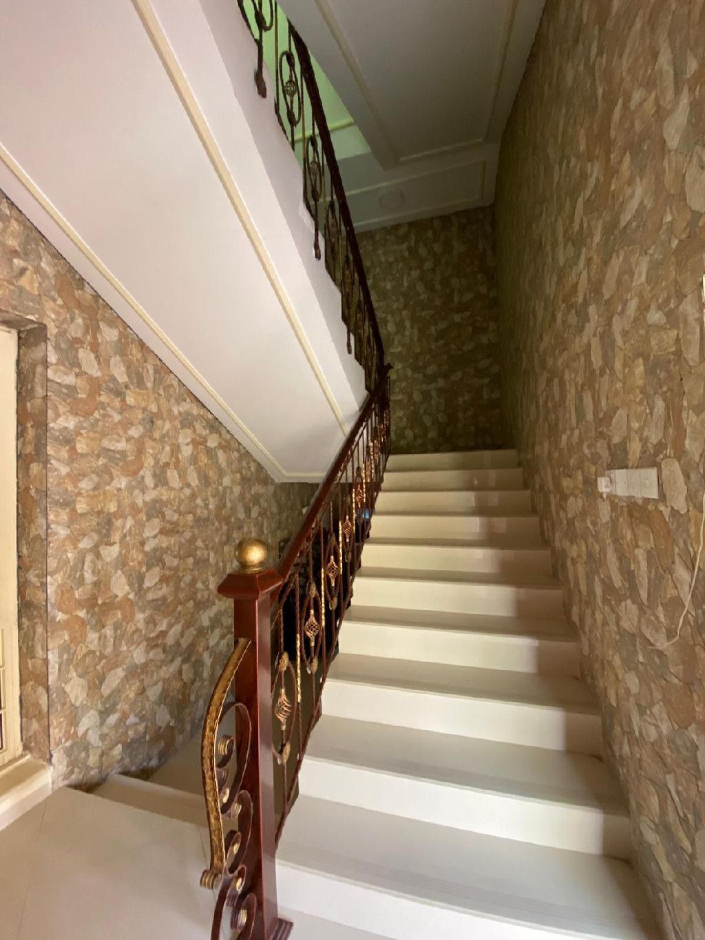 For sale: A large and clean house in Hamad City, Roundabout 21, Al-Hai Way area. It consists of a living room, 4 halls, 9 bedrooms, 9 bathrooms, 3 kitchens (one external), and a garage for two cars. The area is 400 square meters. The price is 170,000 dinars.