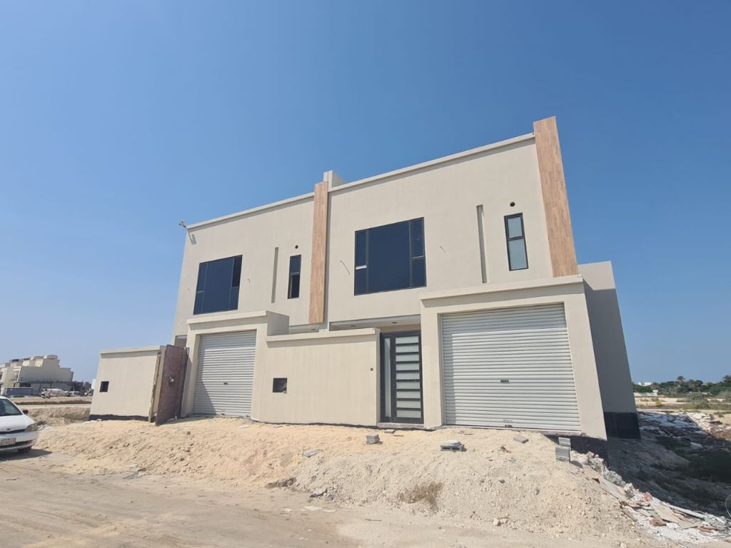 Dominions Real Estate for Sale: 4 luxurious villas in Al Hamala - modern design and prime location. Number of villas: 4. Land area: 161.5 square meters. Building area: 277.5 square meters. Number of floors: two and a half floors. Details: Ground floor: large hall, dining room, two kitchens (internal and external), bathroom, car garage. First floor: master bedroom, two bedrooms with private bathrooms, hall. Second floor: room with bathroom, laundry room. Price: 115,000 Bahraini dinars only. REF 5465.