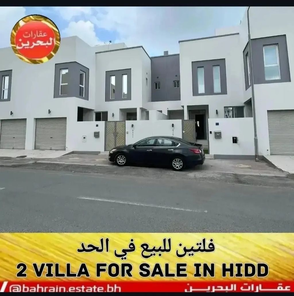 Two villas for sale in the Al-Hadd Al-Jadeed area, fully furnished. One of the villas includes a private swimming pool. Each villa consists of a ground floor with a kitchen, living room, dining room, swimming pool, parking space, and guest bathroom. The first floor has 3 bedrooms, 2 bathrooms, and a laundry area. The air conditioners are split-type. The two villas are under one deed and must be purchased together. They can be purchased by two people through a cooperative facilitation. The area of each villa is 166 square meters. The price of each villa is 110,000 Bahraini dinars.