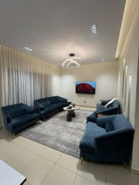 For sale, a villa in Diyar Al Muharraq - Dira Al Oyoun, fully furnished, corner of two streets. Land area is 205 square meters, building area is 227 square meters. The ground floor contains a hall, one room, a bathroom, an internal kitchen, an external kitchen, a laundry room, a garage for two cars, a storage room, and a garden. The first floor contains 4 rooms (two of them are master rooms), a hall, and a bathroom. There are 7 car parking spaces directly opposite the villa. Price is 135,000 BD. License number: Rera B201804 / 0125. Seville Real Estate.