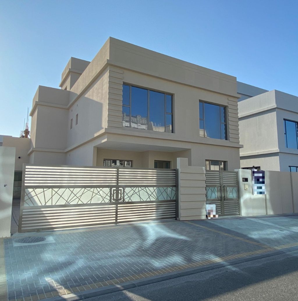 Dominions Real Estate for sale: Luxury villas in Diyar Al Muharraq - Mazoon. The villa consists of a ground floor with a large living room, a smaller living room, a majlis, a kitchen, a bathroom, a guest room (or majlis) with its own bathroom, parking for two cars, and a large garden. The first floor has 4 master bedrooms with 4 bathrooms. The second floor has a laundry room and a maid's room with its own bathroom. Land area: 327.70 square meters. Built-up area: 361.05 square meters. Price: 1,950,000 Bahraini dinars. Reference: 4286.