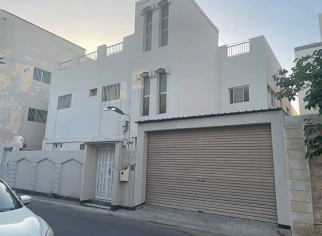 A house in Muharraq, Fareej Al-Rahma, with a land area of 334.5 square meters, has two floors. The upper floor contains two apartments: one with three bedrooms, a living room, a bathroom, and a kitchen; the second has two bedrooms, a kitchen, two living rooms, and a bathroom. The ground floor consists of two bedrooms, two living rooms, two bathrooms, and a kitchen. There is a rented annex with one room, a living room, a bathroom, and a kitchen. The asking price is 165,000 Bahraini dinars, negotiable.