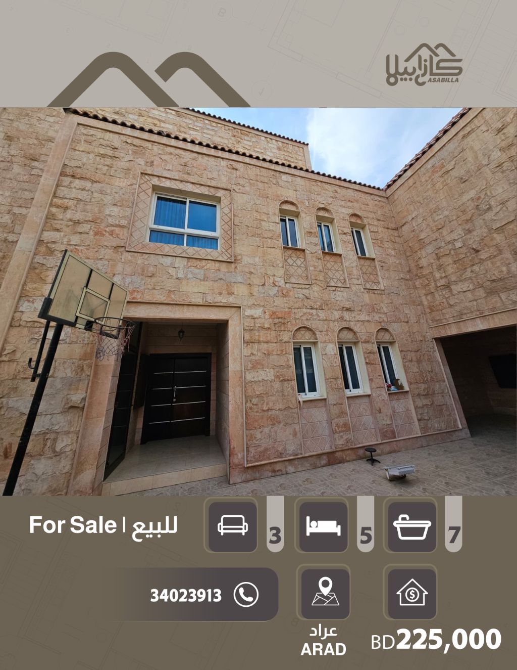 For sale: A very luxurious villa in Arad - a prestigious and quiet area, fully furnished and in excellent condition. Villa specifications: Ground floor: Two spacious halls with high-end finishing, two fully equipped kitchens, three bedrooms, three bathrooms. First floor: Two spacious master bedrooms, a living room, a storage room + kitchen, three bathrooms. Second floor: A hall, a master bedroom, a kitchen, a bathroom, with a balcony offering a distinctive view. Services and facilities: Four rooms for workers, a car parking space, high-end finishing and distinctive design.