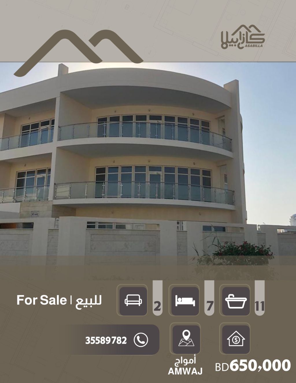 A luxurious villa with a sea view and direct access to the lagoon - Amwaj Islands. Property specifications: 7 bedrooms - all equipped with balconies offering beautiful views - 2 maids' rooms - a driver's room - 11 bathrooms - 4 to 5 spacious living rooms - private pool/pools - internal elevator - 2 kitchens (main + preparation) - large garage accommodating multiple cars - central air conditioning - Amwaj lagoon beach, close proximity to the lagoon and vital facilities. Area: area.