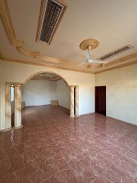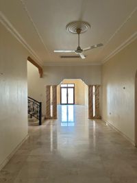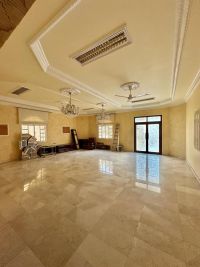 For sale: A large residential/commercial villa in East Riffa - Abu Kuwara, near Ibn Huwayl Mosque. It consists of 4 halls, an internal and external majlis, 5 bedrooms, 5 bathrooms, 3 kitchens, a maid's room, a driver's room, and a laundry room. It has a large garden and a garage that accommodates 5 cars. The area is 787 square meters. Note: There is a preliminary license to build 4 shops with mezzanines for 400,000 dinars. License number: B201804/0125. Ad number: 11.