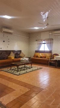For sale: A very luxurious apartment located above a flat. It consists of 3 rooms, 3 bathrooms, and 3 open halls connected to each other. Additionally, there are 4 rooms, 4 bathrooms, an internal kitchen, and 1 external kitchen. It includes 6 garages for 6 cars. The price is 400,000 Bahraini dinars. Located in Jurdab, near Sheikh Mohammed. The area is 1,111 square meters, situated at a corner of two streets. For contact: B201804 / 0125. License number. Ad number (12).
