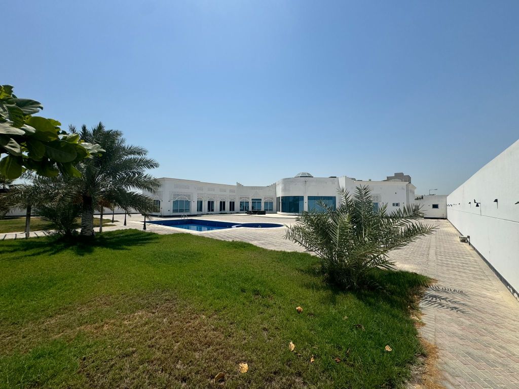 A very luxurious and elegant villa with a very large area and modern design in the Al-Dhala area. It consists of 8 large master bedrooms, 4 spacious living rooms, a domestic staff annex with bathrooms, a large swimming pool with an area of 200 square meters, and an empty land planted with grass covering 5,549 square meters. The sale price is 1,800,000 Bahraini dinars and is negotiable. License number B201804 / 0125. Ad number 32. For contact: Baw Abdullah.