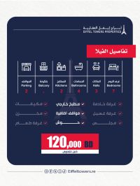 Eiffel Towers Real Estate Company offers a villa for sale in Isa Town. Land area: 250 sqm. Building area: 300 sqm. Villa details: 2 floors, 7 rooms, 3 halls, 2 kitchens, 2 garages, 4 bathrooms. Additional features: courtyard, close to all services. Total price: 120,000 Bahraini dinars. For contact: Mahmoud Salah, eiffeltowers.re, eiffeltowers.re. Licensed broker approved by the Real Estate Regulatory Authority, license number B202403/1257.