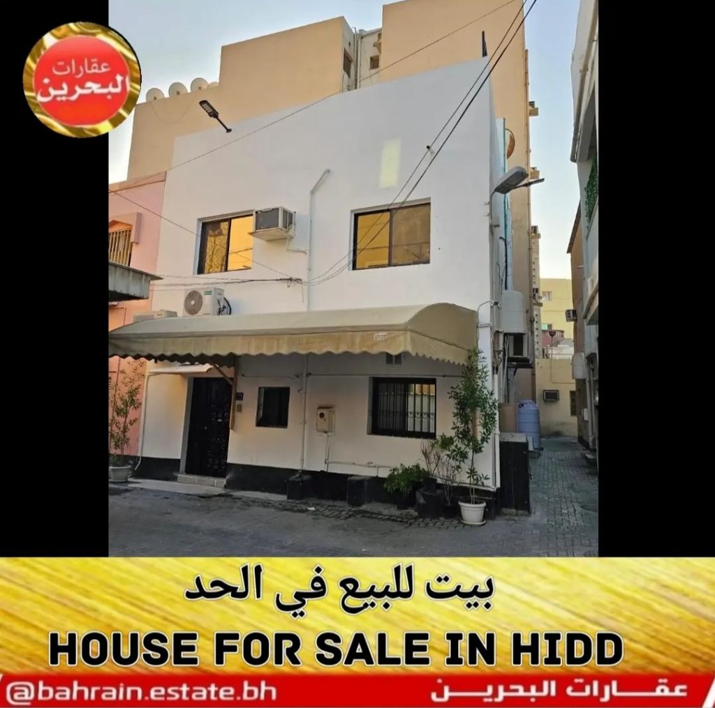 A house for sale in Al-Hadd with a large hall and a majlis on the ground floor, a carport, a kitchen, three bathrooms, and four rooms. Land area is 70.1 square meters, building area is 140 square meters. Price is 60,000. For contact.