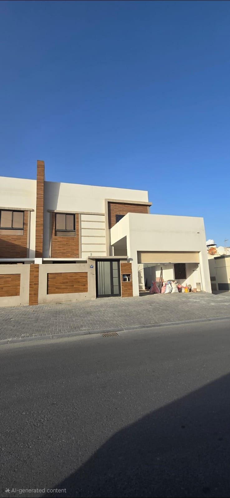 A villa in Isa Town with a land area of 220 square meters and a built-up area of 330 square meters. Ground floor: garage for two cars, hall 5x12 meters, dining room/kitchen, two bathrooms, external kitchen. First floor: hall, master bedroom open to the garage, two rooms each with a bathroom. Price: 130,000 BHD.