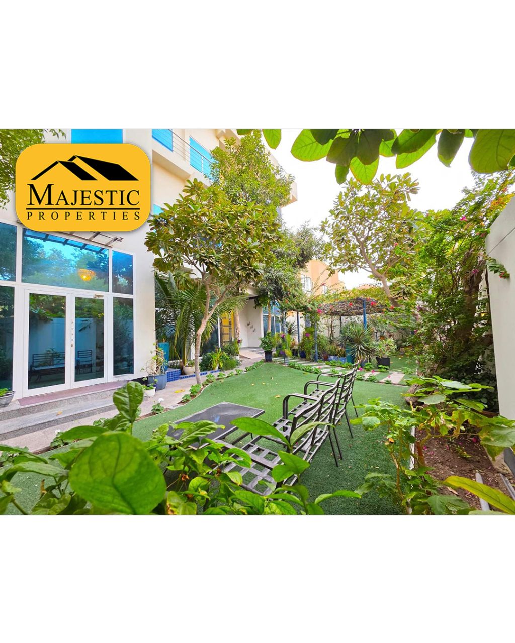 For sale: A large villa in Sand - Al Nasfa, custom-built near all services. It consists of 10 bedrooms, 5 living rooms, 4 kitchens, 2 dining rooms, 12 bathrooms, a maid's room and service area, an elevator, central air conditioning, 3 balconies, a large garden, a garage for 9 cars, land area of 734 m², built-up area of 1062 m². The asking price is 345,000 Bahraini dinars. Ref MPM3335.