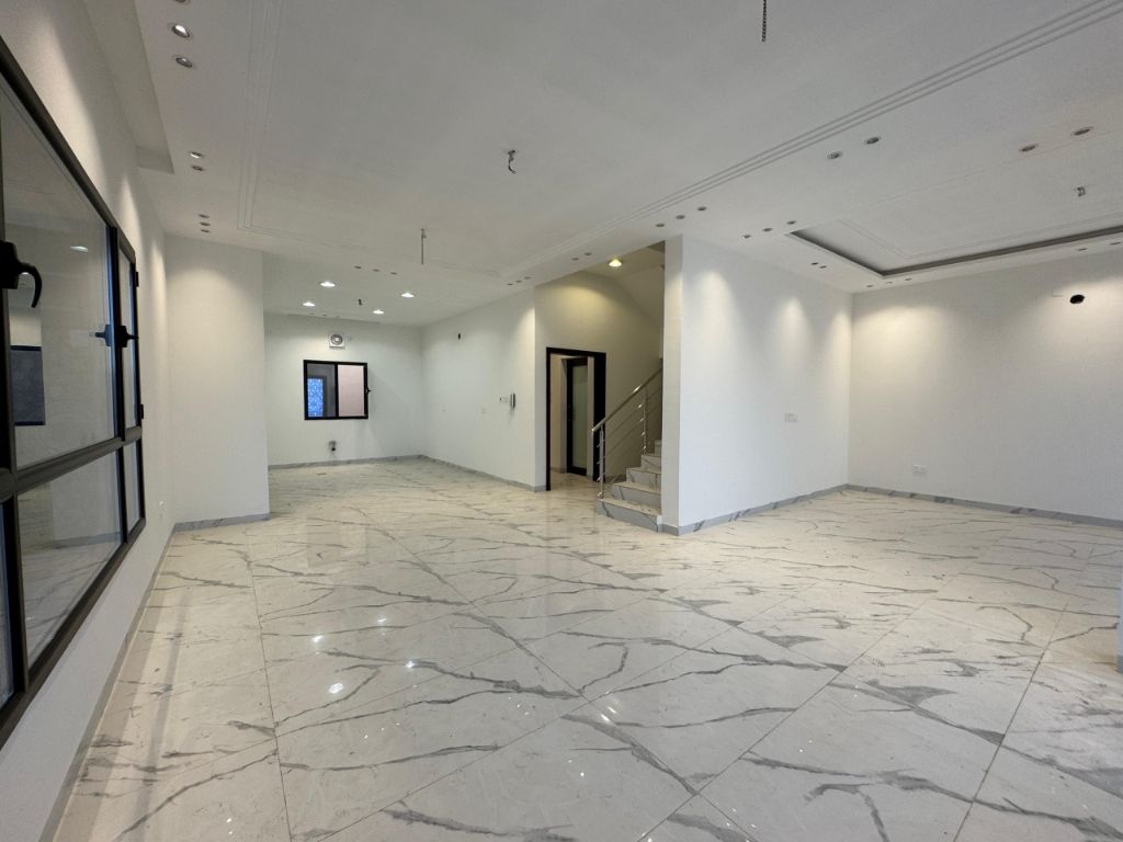 Dominions real estate for sale A villa in the Damstan area. Near the main street, consisting of two floors. The ground floor includes a Majlis, a large hall, a master bedroom, an open internal kitchen, an external kitchen, two bathrooms, parking for two cars, and a front garden. The first floor includes three master bedrooms and a hall. The second floor includes a maid's room and a laundry area. Land