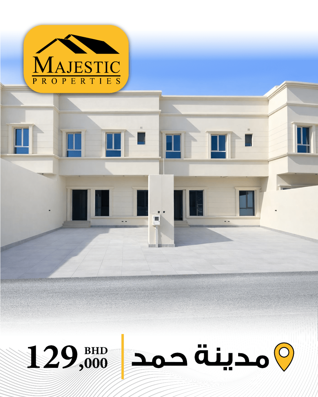 For sale: 3 new villas in Hamad City - Second Roundabout. Each villa consists of 4 bedrooms, a living room, a kitchen, 5 bathrooms, a garage for 2 cars. Land area: 205 m². Building area: 300 m². Asking price: 129,000 Bahraini dinars. Ref: MPM3389.