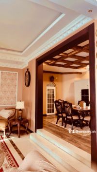 For sale, a villa in Tubli consisting of three floors. The ground floor includes a hall, internal and external kitchen, bathroom, living room, garage for 3 cars, swimming pool, and a maid's room. The first floor has 3 master bedrooms. The second floor has 3 master bedrooms. There is a prepared space for an elevator. The area is 391 square meters. The asking price is 220,000 BHD, negotiable. Sale includes furniture.