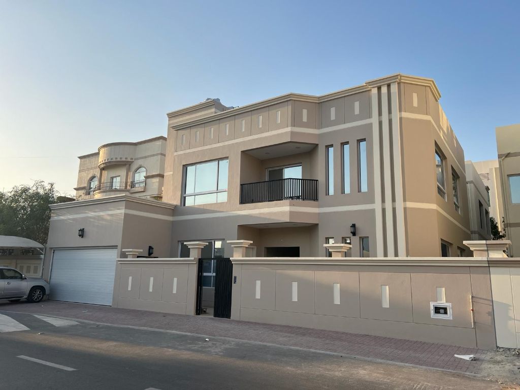 Villa for sale in Riffa, Abu Quora. New construction. Ground floor: two halls, two master bedrooms, a majlis, a large kitchen, and two bathrooms. First floor: a large hall, four master bedrooms, and a balcony. Second floor: two rooms and a bathroom. Roof available. Includes an elevator and parking. Area: 390 square meters. Price: 270,000 Bahraini dinars.