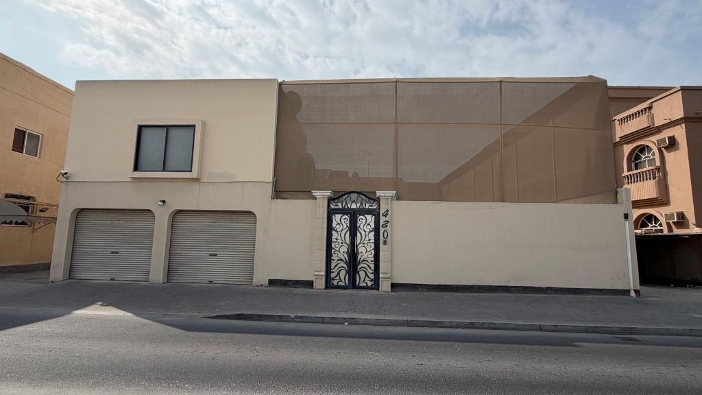 For sale: a distinctive house in Al Budai, strategically located on 4 streets and a commercial street. Land area is 761.8 square meters. It consists of a majlis, a hall and dining rooms, 5 master bedrooms with bathrooms, spacious halls, a kitchen, a maid's room with a bathroom, a garden, a swimming pool, a garage for two cars, additional rooms above the garage, and a separate domestic worker's room. Price: 215,000 dinars.