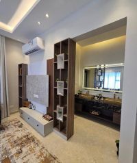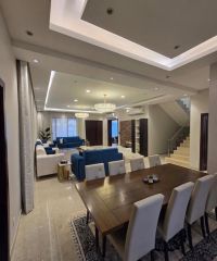 For sale, a new furnished villa in Juffair with a sea view. An elegant villa, two and a half years old, on a land area of 405.1 square meters and a built-up area of 370 square meters. It consists of 5 bedrooms, 8 bathrooms, 2 large living rooms, a majlis, 2 equipped kitchens, a maid's room and laundry room, a private swimming pool, a spacious garden, a parking space, and a direct sea view. Price: 210,000 Bahraini dinars.