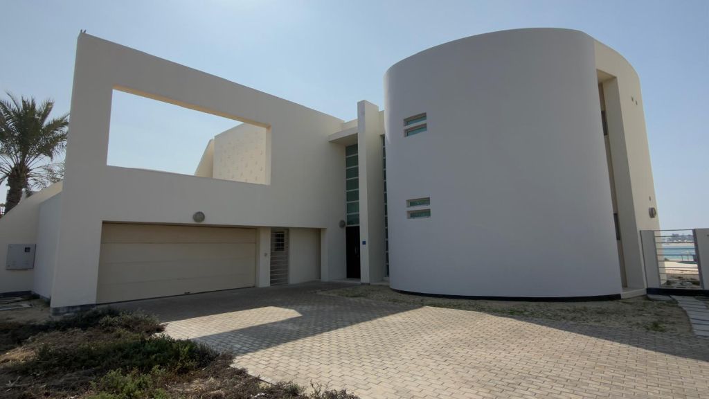 For sale: A luxurious beachfront villa - Durrat Al Bahrain. A luxurious villa on a 1500 sqm plot with two floors, directly overlooking the sea. It consists of 5 bedrooms with an en-suite bathroom for each, two open living rooms connected to each other, a guest bathroom, an indoor and outdoor fully equipped kitchen, a maid's room and a driver's room, a garage for two cars, a spacious garden, and a swimming pool. Price: 780,000 Bahraini dinars.