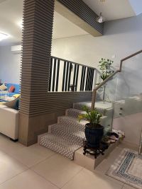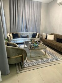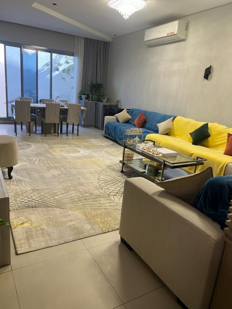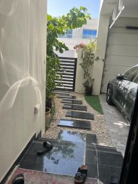 A villa on two streets, front and back, for sale in Diyar Al Muharraq, Al Naseem district, with a land area of 206 and a built-up area of 330. It consists of 4 master bedrooms, an American-style garage for two cars, a small garden, two kitchens, and an additional third kitchen with cabinets in a large balcony facing the street. There is a room for a domestic worker and an additional room for a driver. The interior design is from the original company of the project, and there is a design at the entrance. There are no service fees. The asking price is 160,000 Bahraini dinars, negotiable through an office.