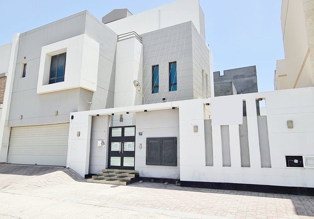 Villa for sale in Muharraq, new construction, land area 300 square meters, two living rooms, 4 bedrooms, two kitchens, 6 bathrooms, garden, garage, price 155,000.