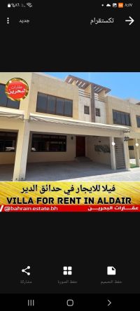 للإيجار: فيلا في كمبوند في حدائق الدير، تتكون من 5 غرف، وصالة، و5 حمامات، ومطبخ داخلي، ومطبخ خارجي، وموقف لـ 9 سيارات، و9 مكيفات. السعر: 400 دينار، باستثناء الكهرباء.