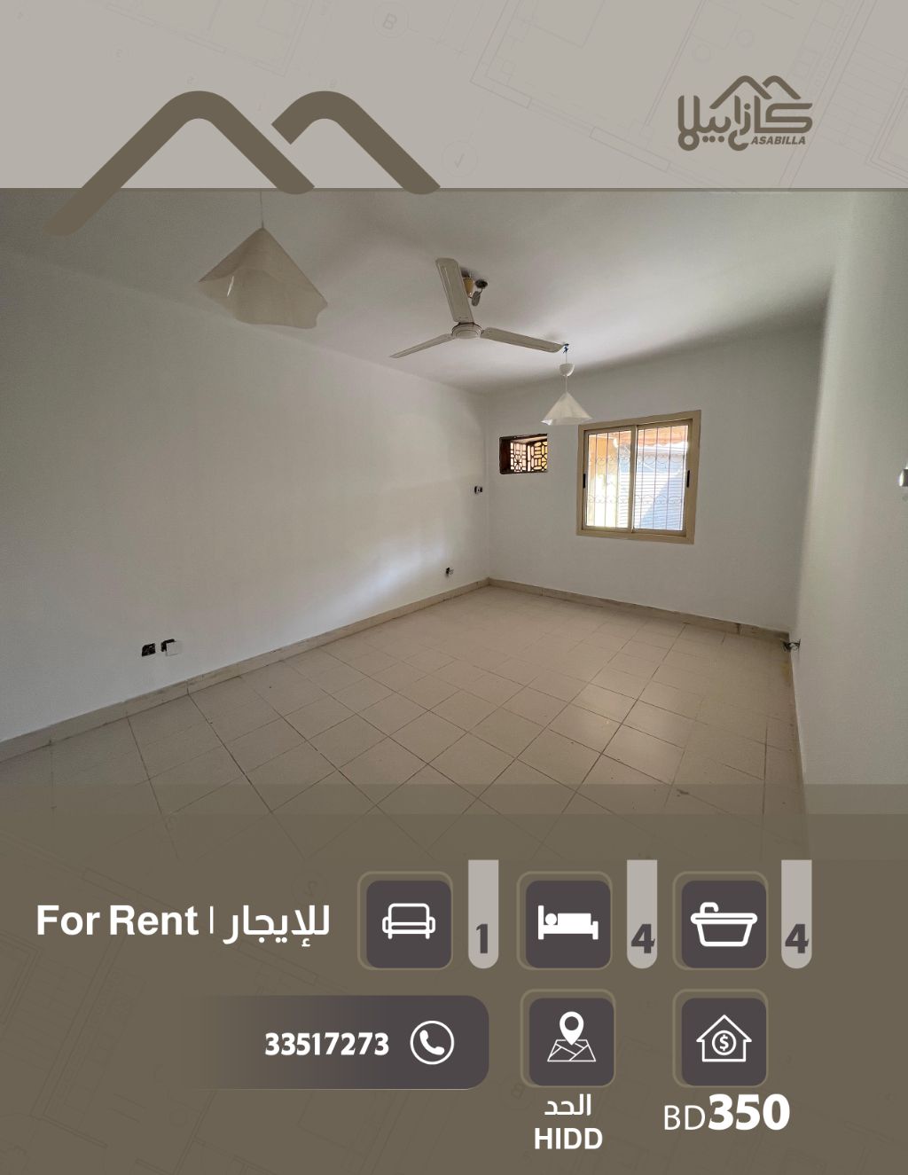 للإيجار: بيت في الحد القديمة. البيت مجدد بالكامل ويقع على شارع رئيسي. التفاصيل: طابقين، مجلس منفصل مع دورة مياه خاصة، 3 غرف نوم (واحدة ماستر)، صالة واسعة، مطبخ، 3 دورات مياه، مخزن صغير، 2 مكيفات، حوش صغير. المرافق والخدمات القريبة: المدارس، المركز الصحي، مواقف سيارات. السعر: 350 دينار بحريني، غير شامل الكهرباء والماء. للتواصل والاستفسار.