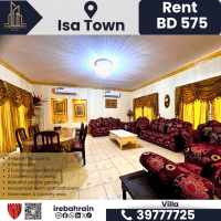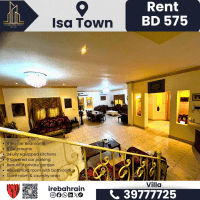 فيلا مفروشة بالكامل مع حديقة للإيجار - مدينة عيسى. الإيجار 575 دينار بحريني شهريا (بدون كهرباء ومياه) 4 غرف نوم رئيسية مع خزائن ملابس، 6 حمامات غرفة للعاملة المنزلية مع حمام، مطبخان مجهزان بالكامل، مجلس، غرفتا معيشة مخزن ومنطقة غسيل، موقفان سيارات مغطىان، حديقة خاصة جميلة. تقع في مدينة عيسى بالقرب من جامعة الخليج، مع سهولة الوصول الى سند جرداب، وبحير. للتواصل
