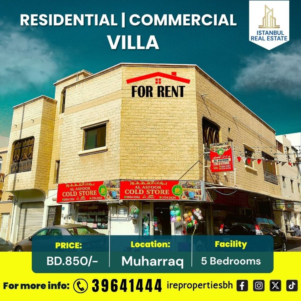 فيلا سكنية تجارية للإيجار في المحرق ب 850 دينار بحريني. هذه الفيلا متعددة الاستخدامات المكونة من 5 غرف نوم و3 حمامات هي أكثر من مجرد منزل - انها حل مثالي للمعيشة أو العمل أو الإقامة الجماعية. الميزات الرئيسية: 5 غرف نوم، 3 حمامات، صالة واسعة، مطبخ مجهز بالكامل، غرفة للعاملة المنزلية، منطقة غسيل الملابس، غرفة تخزين منفصلة، وموقف سيارات ضخم يتسع ل 6 سيارات. مثالية للعائلات الكبيرة أو مكتب شركة.