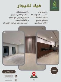 للإيجار فيلا في سار مكونة من أربع غرف، صالة واسعة، بلكونة واسعة، مطبخ داخلي مفتوح، مطبخ خارجي مع مخزن، غرفة عاملة، سطح واسع، باركنج لسيارتين، نصف مفروشة، تشمل الكهرباء. يتميز الموقع بالهدوء وبالقرب من مجمع سار ومجمع الأسرة. السعر: 700. رقم التواصل: /