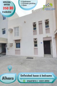الموقع: الحورة. منزل للإيجار: 6 غرف نوم، 350 دينار، غير شامل الماء والكهرباء. 6 غرف نوم - 4 غرف نوم - 2 صالة - مطبخ - السطح - الفناء الخلفي - 3 مواقف خاصة - قريب من جميع الخدمات. اتصل على مؤسسة التنظيم العقاري، رقم الترخيص PM 20250/1182.