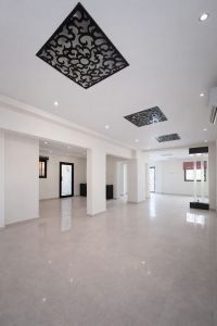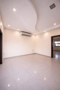 فيلا للإيجار في البحرين بموقع ممتاز. تتكون من 5 غرف نوم، 6 حمامات، موقف سيارات، غرفة خادمة، ومطبخ. السعر 450 دينار.