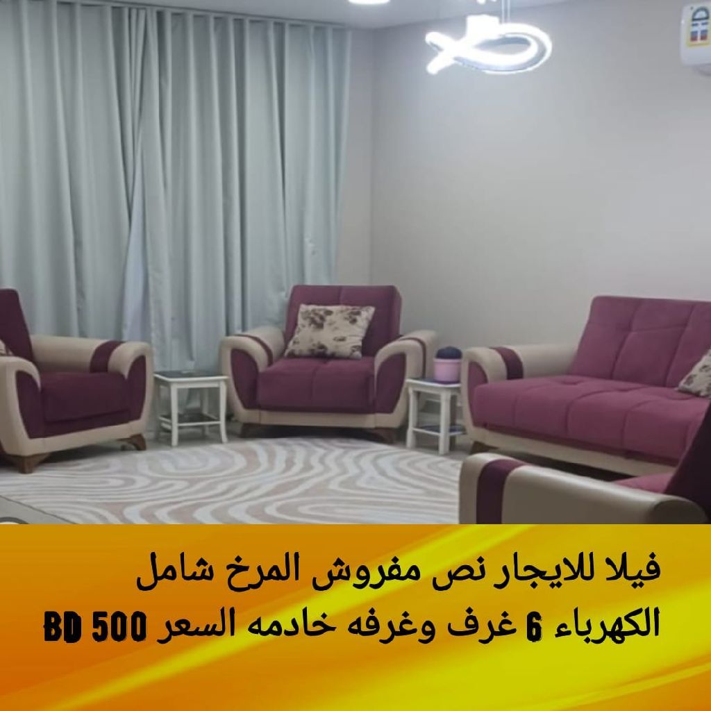 للإيجار: فيلا راقية جداً في المرخ. الكهرباء باسم المالك، والمستأجر يدفع الفاتورة. تتكون الفيلا من 6 غرف نوم، 1 غرفة خادمة، 5 حمامات، 2 صالات، 1 مطبخ، 1 حوش خلفي صغير، 1 بلكونة، و2 مواقف خاصة. السعر: نصف مفروش، 500. الكهرباء مدعومة؛ المستأجر يدفع الفاتورة. للتواصل.