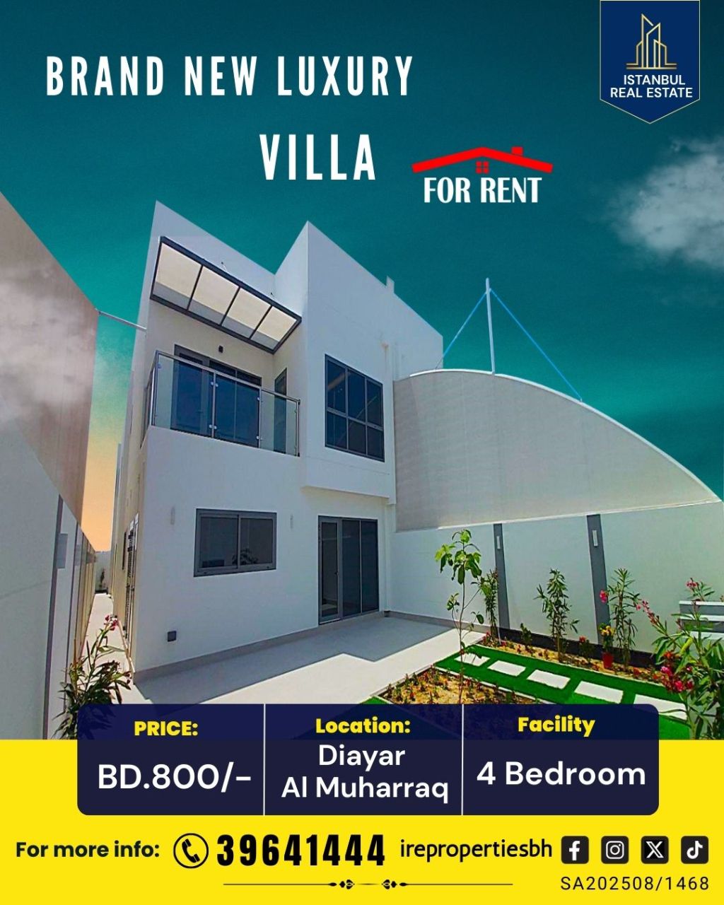عيشوا الفخامة في ديار المحرق مقابل 800 دينار بحريني. استمتعوا بهذه الفيلا المذهلة شبه المفروشة والمكونة من 4 غرف نوم، والمتوفرة الآن للإيجار. بيت أحلامكم ينتظركم بسعر لا يضاهى. المميزات تشمل 4 غرف نوم رئيسية، صالتين واسعتين + منطقة لتناول الطعام، مطبخ مجهز، غرفة للعاملة المنزلية مع حمام، منطقة حديقة خاصة، مواقف مخصصة للسيارات، موقع متميز مع سهولة الوصول إلى جاليريا مول والمدرسة الكندية والمطار والمزيد. الأجواء عصرية وواسعة وجاهزة للانتقال.