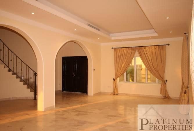 For rent A villa in the East Riffa Abu Quwara area, inside a compound, with very luxurious super deluxe finishes, half fully furnished, very spacious, near all services and commercial complexes. It consists of 5 bedrooms, a maid's room, a driver's room, two kitchens (internal and external) a very large living room, a guest Majlis, 6 bathrooms, a laundry room, parking for two cars, a swimming pool