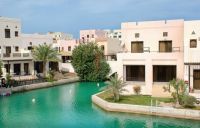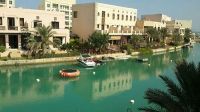A ground - floor chalet for sale or rent in Amwaj Islands, Floating City. It has one bedroom, a living room, two bathrooms, a kitchen, and a garden on the canal. The internal area is 88 SQM, excluding the garden, and it is furnished and ready for sale or rent. The sale price is 79000 dinars, and the rent is 500 dinars. There is parking available for a boat and a jet ski