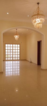 A luxurious villa for rent in a prime location in Zinj, consisting of 5 bedrooms with private bathrooms, spacious living rooms, two kitchens equipped with the latest appliances, a guest bathroom, a garage that accommodates 3 cars, a swimming pool, a garden, a maid's room, a storage room, and a laundry room. The strategic location provides easy access to the King Fahd Causeway. For residential use