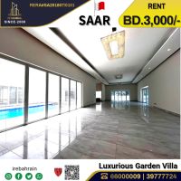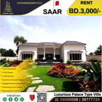 Semi furnished Palace Type villa for rent in Saar BD3000. This very beautiful brand new villa is located in the Saar area, calm and quiet area. It consists of a very huge living area, dining area, TV room, 4 master bedrooms with walk - in closets, high - end ceiling, natural lighting throughout The Villa, very spacious beautiful swimming pool, a well - equipped modern kitchen, housemaid room, driver's