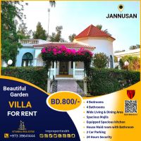 4 BHK Beautiful Garden Villa for rent in Jannusan - BD800. Property Highlights 4 spacious Bedrooms with ample natural light. 4 well - designed bathrooms. Living & Dining wide areas, perfect for families or Guests. Kitchen Equipped Spacious Kitchen. Additional Spaces Storeroom and laundry room. Housemaid room with an attached bathroom. Garden Area Swimming Pool. Parking 2 covered. Location Easy