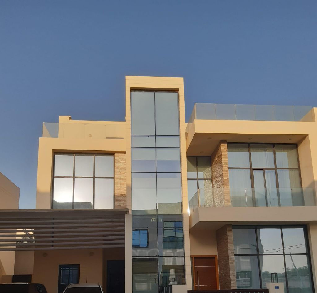 For rent: a luxurious and elegant villa in the Northern Riffa area, modern style, consisting of five master bedrooms, a large hall, a living room, a dining room, a swimming pool, a maid's room, a laundry room, a driver's room, central air conditioning, a front garden, and parking for two cars. Price: 1100 dinars.