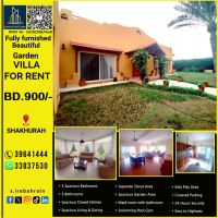 Fully furnished beautiful garden villa for rent in Shakhurah BD900/ This fully furnished garden villa consists of 3 bedrooms, 3 bathrooms, spacious hall, dining area, equipped kitchen, separate sit - out area, housemaid room with bathroom, covered car parking. Swimming pool, gym, kids play area, etc. easy access to Country Mall, Saar, Seef, Jannusan, Budaiya, etc. rent is BD900/ per month without