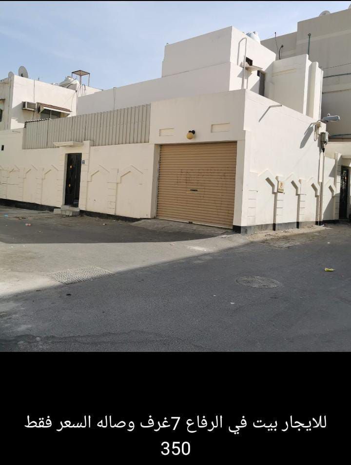For rent: a house in Riffa consisting of 7 rooms, 4 bathrooms, a kitchen, and a hall. Price is only 350. For contact.