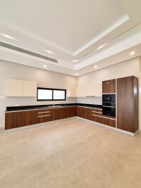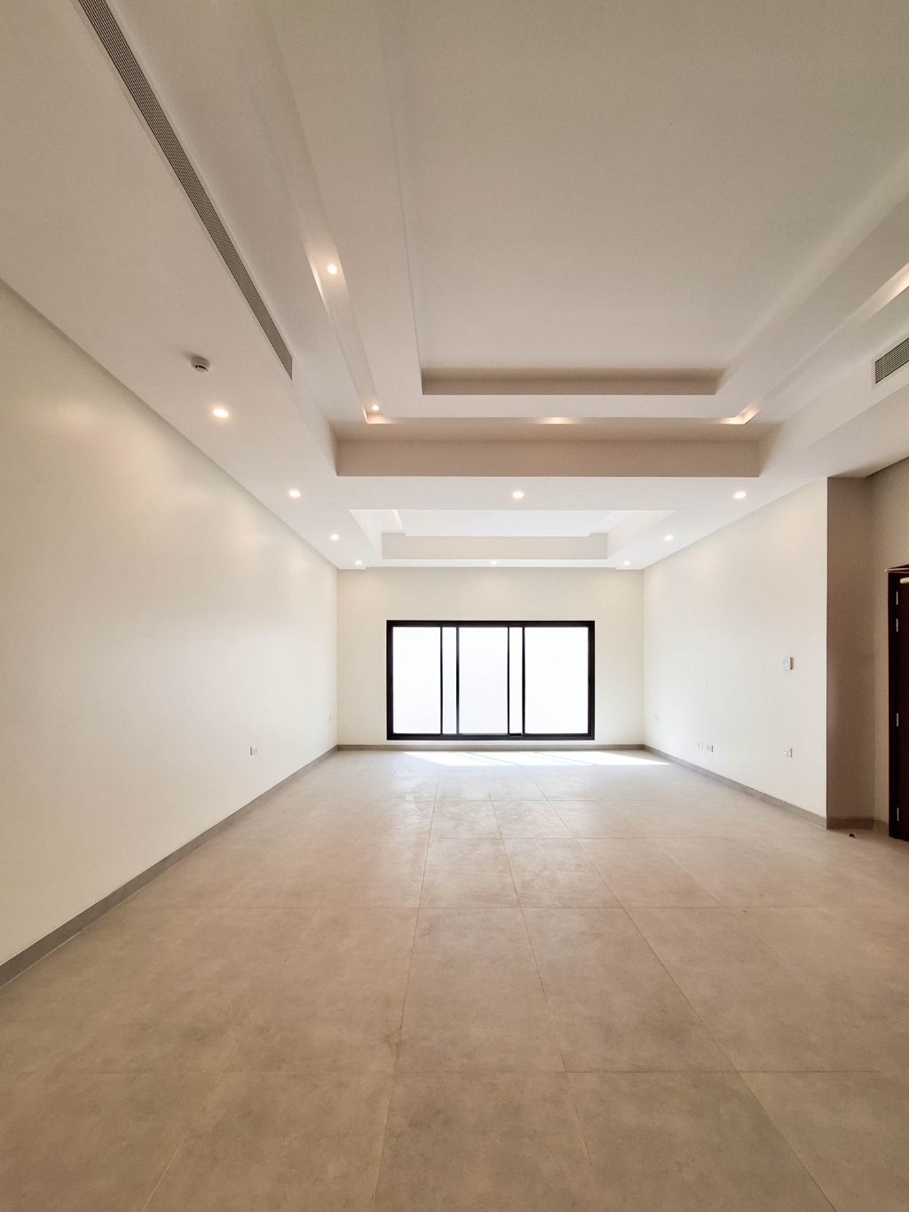 For rent, a new semi furnished villa in the Manama area. Features include three bedrooms, five bathrooms, two living rooms, two kitchens, and two parking spaces. The monthly rent is 850 Bahraini dinars, excluding electricity and water fees. For inquiries, please contact the following numbers harbourbh, harbourrent - VR 01883