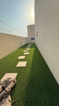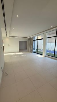 For rent: A luxurious and elegant modern villa in Northern Riffa, consisting of five master bedrooms, a large hall, a living room, a dining room, a swimming pool, a maid's room, a laundry room, a driver's room, central A/C, a front garden, and parking for two cars. Price: 1100 dinars. Contact for more information.