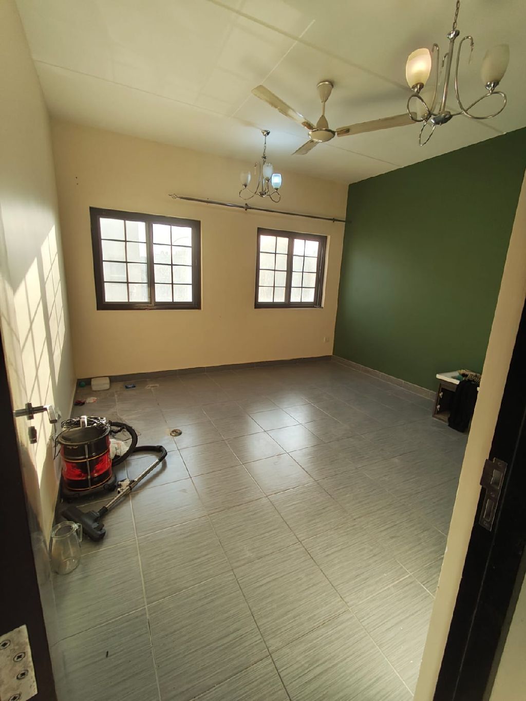 For rent: half a villa in Al Diyar, consisting of 5 rooms, a hall, a kitchen, 4 bathrooms, a roof, and a private shaded parking. Includes electricity and water, no maintenance required. Price: 320 dinars. For inquiries.