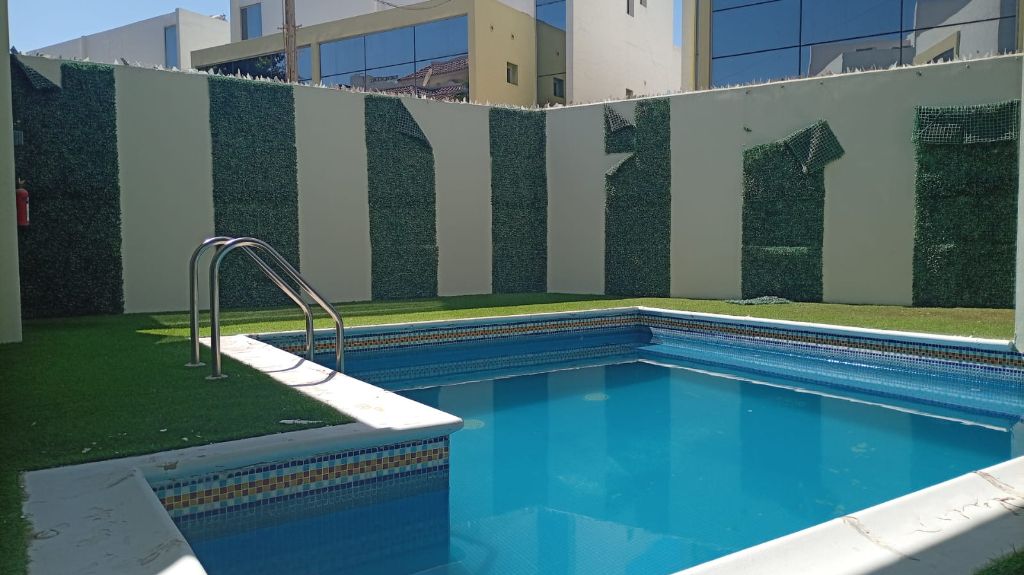 Villa for rent in the Umm Al Hassam area. Price: 950 dinars, excluding electricity. Area: 150 square meters. Specifications: It consists of 3 floors, 3 bedrooms, 5 bathrooms, and a swimming pool. Fully furnished. (Prime location / Close to services / Ready finishing) For contact.